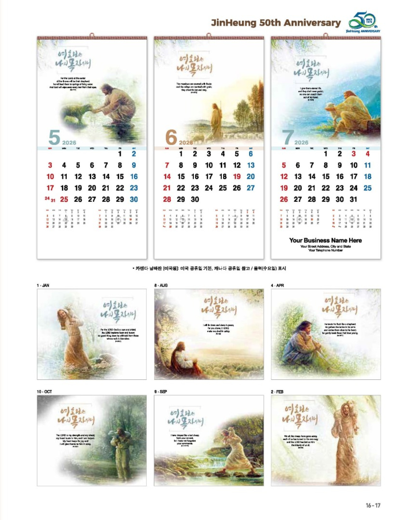 • 교회명 인쇄는 100부 이상 오더하시면 무료이고, 100부 미만인 경우에는 벽걸이 캘린더 $20.00, 탁상용 캘린더 $30.00의 인쇄 판비 제작비용이 추가됩니다.