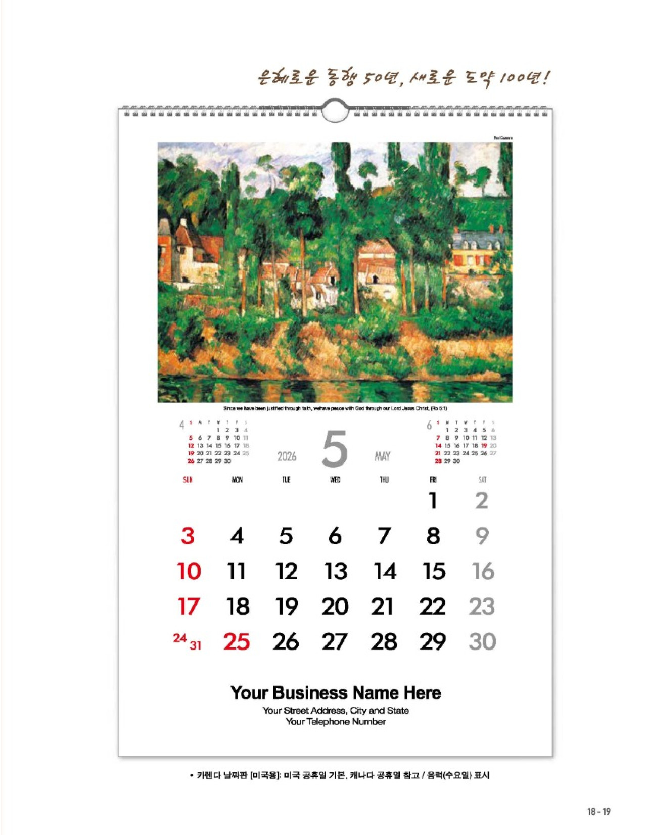 • 캘린더 운송비는 캘린더 발송과 함께 별도로 인보이스에 추가되어 청구됩니다.