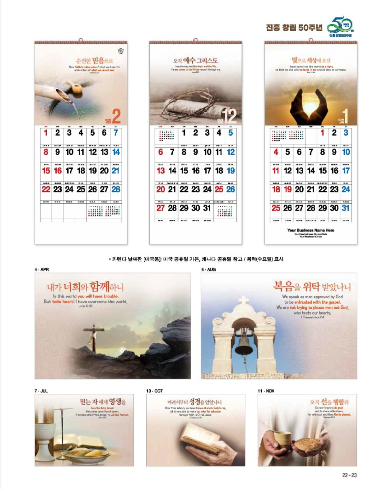 ㆍ카렌다 날짜판 (한국용): 음력(매일) 및 교회력 표기, 미국과 캐나다의 국경일과 공휴일 영문 표기 / 음력(매일) 표기