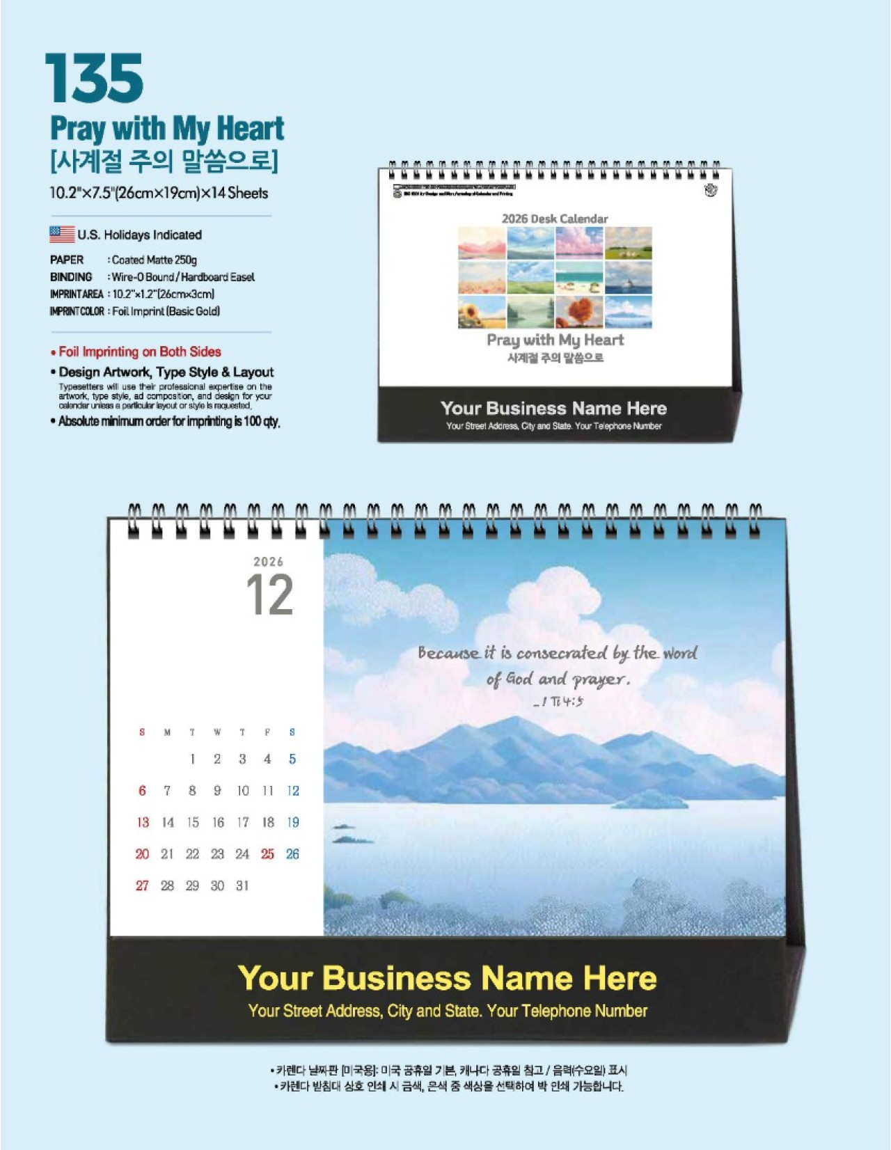 카렌다 날짜판 (미국용): 미국 공휴일 기본, 한국(태극기) 및 캐나다 공휴일 포함 / 음력(매일) 표시