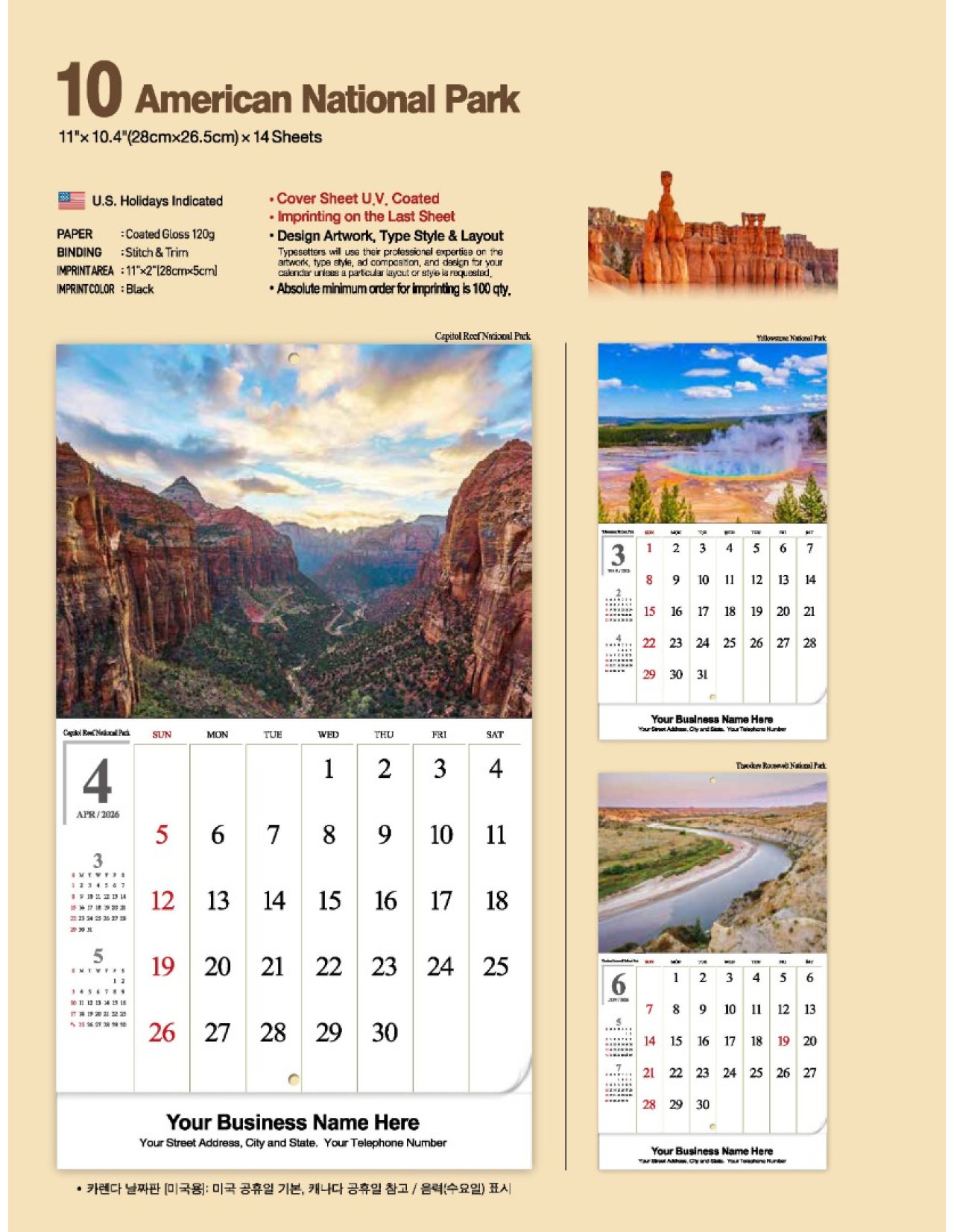 • 교회명 인쇄는 100부 이상 오더하시면 무료이고, 100부 미만인 경우에는 벽걸이 캘린더 $20.00, 탁상용 캘린더 $30.00의 인쇄 판비 제작비용이 추가됩니다.