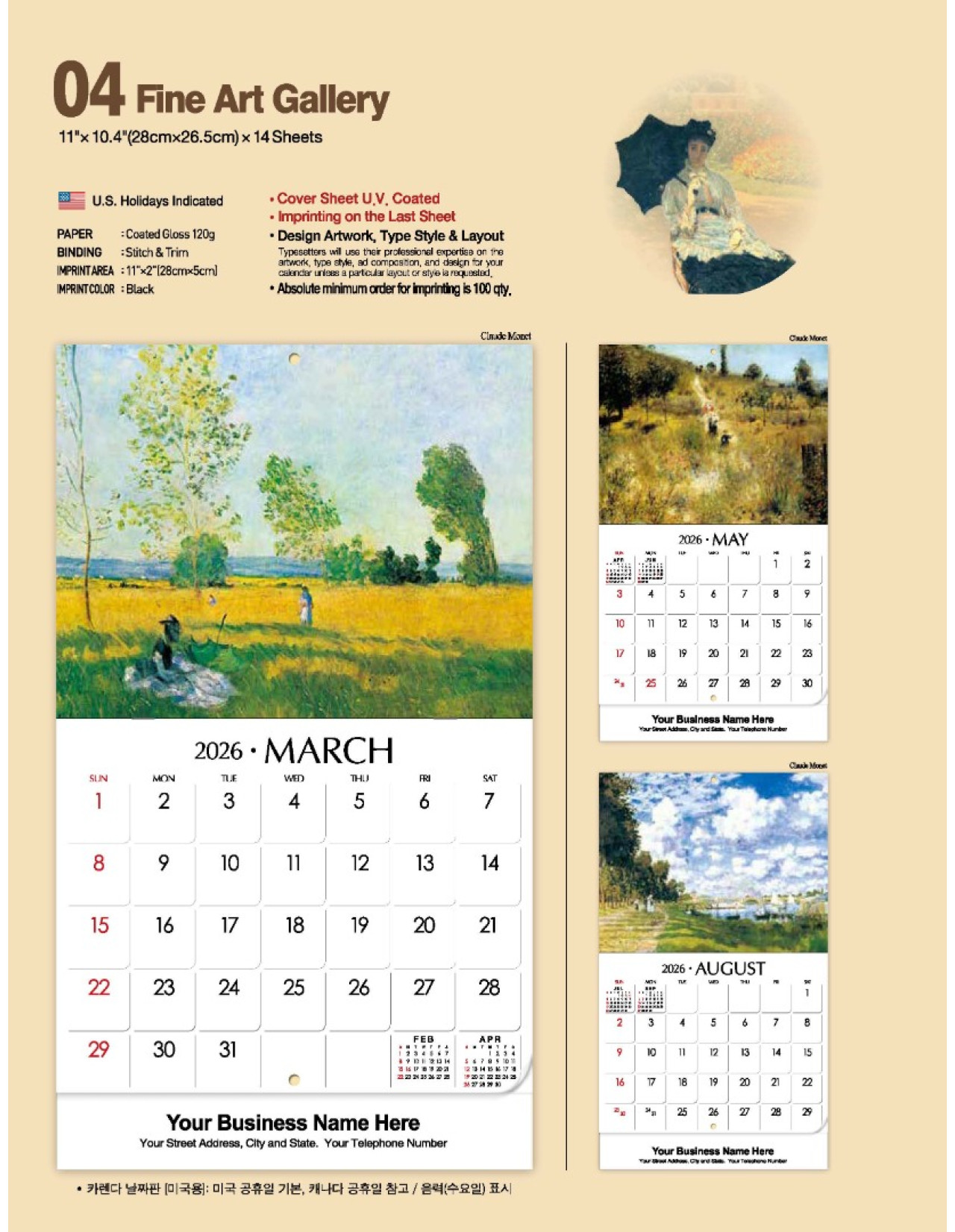 • 캘린더 운송비는 캘린더 발송과 함께 별도로 인보이스에 추가되어 청구됩니다.
