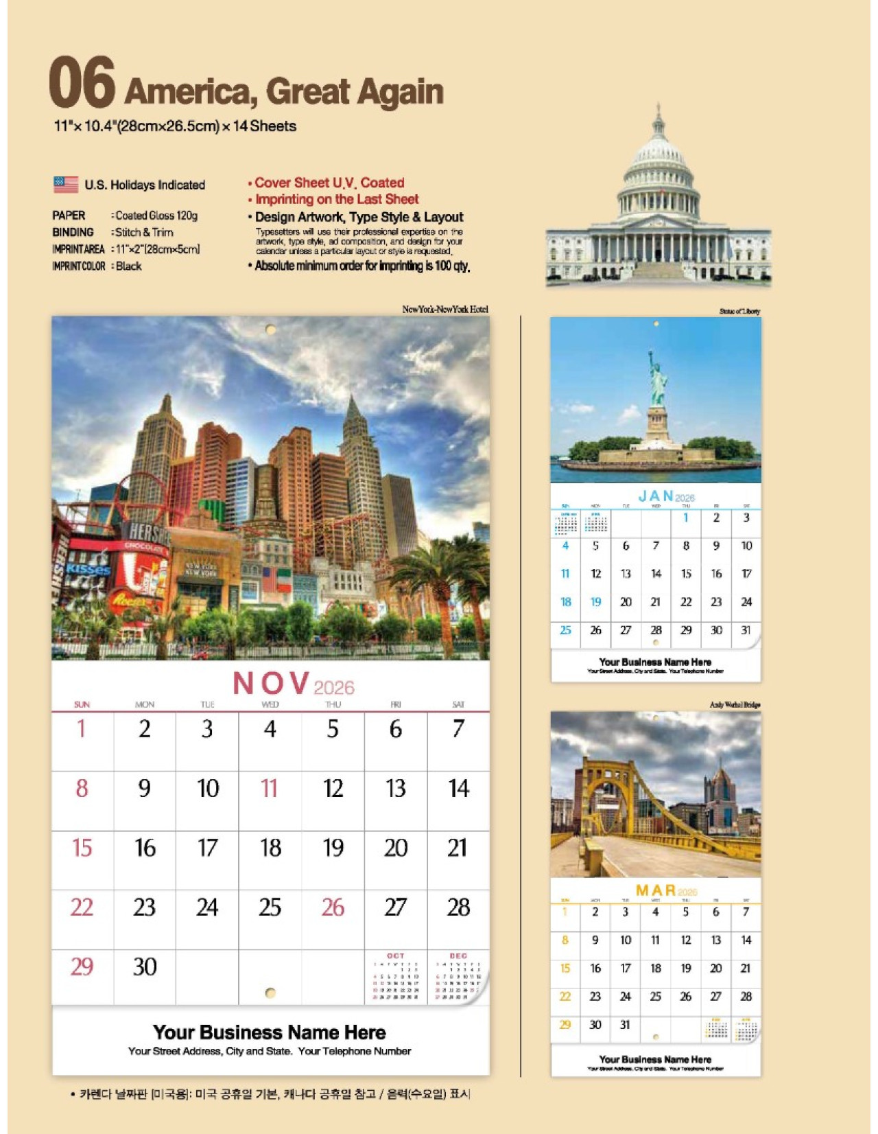 • 캘린더 운송비는 캘린더 발송과 함께 별도로 인보이스에 추가되어 청구됩니다.